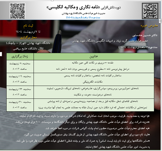 درصورت برنامه‌ریزی مجدد، قطعا در این وبگاه اطلاع رسانی خواهد شد.