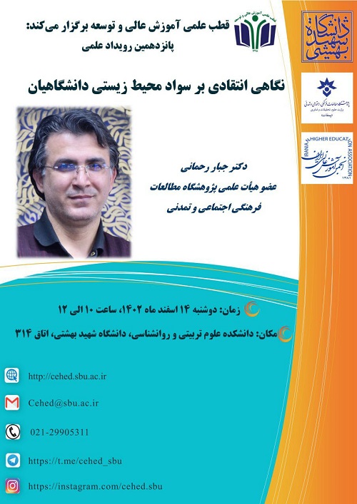 نشست «نگاهی انتقادی بر سواد محیط زیستی دانشگاهیان» دوشنبه 14 اسفند 1402 در دانشگاه شهید بهشتی برگزار می شود.