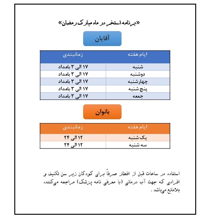 زمانبندی استخر فجر - ماه رمضان 98